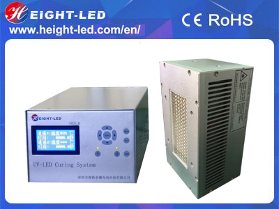 This is a high-performance UVLED  curing system, the system includes the controller, UVLED irradiation head and cable. UVLED head with imported high-intensity UV LED integrated UV spectral wavelength of 365nm, 385nm, 395nm, 405nm, the use of forced air cooling, the effective curing area of 100X40mm, support for external signal input and trigger, can be equipped with semi-automatic or fully automated production line .